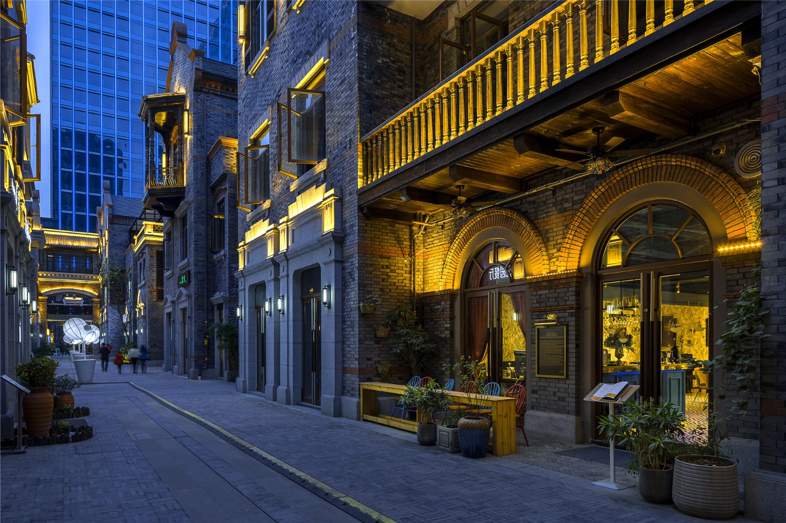 本项目位于天府新城站南组团,所在区属于成都城南片区。项目规划为办公楼、商业组成的集办公、餐饮、文化、娱乐为一体的商业综合项目。建筑风格体现了民国时期的包容、开放、丰富的城市气质。以中西融合、新旧结合为基调,将上海传统的石库门里弄风格与充满现代感的新建筑现代风格融为一体。漫步其间,仿佛时光倒流,重回当年。青砖步行道,红青相间的清水砖墙以及厚重的乌漆大门,加上雕着巴洛克风格卷涡状山花的门楣,使得观光客仿佛置身于二十世纪二、三十年代的民国时期。然而一步跨进每个建筑内部,则又是非常现代和时尚。