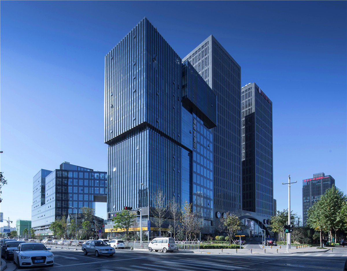 郑州建业智慧港位于郑东新区东部,周边交通便利;ABCDE五栋楼呈S型布置,将场地有机的划分出两大广场空间,北面为商业广场,南面为商务办公广场,有效地将商业与办公的人流分开。同时五栋楼相互分开又相互联系,形成了各式的空中花园穿插在办公空间之中,将本项目打造成为了绿色生态办公的标杆。二层的架空空间,遍植绿化,同时插入各式休闲商业,增加了整个项目的趣味性。