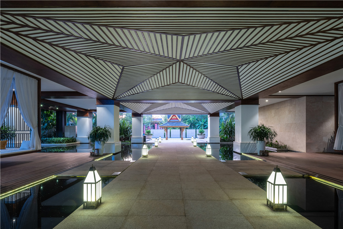 热带雨林的气候特点及民族文化背景,造就了西双版纳独特的地域建筑特色。建筑师充分发掘西双版纳热带自然环境和少数民族风情文化的独特资源,将现代设计融入傣族建筑文化特色,进行革新改造。独具民族特色的建筑外观与自然相映,让空间与时间在此地相融,提炼出典型的建筑元素,以现代的材料、工艺,适应现代度假建筑的功能特点,创作出有鲜明的地域特点同时兼具时尚气息的现代“新民族”风格。