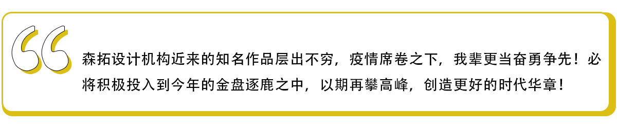 在今年这样的前所未有的疫情局势下,森拓设计机构定当做出属于自己的行业责任,与各位地产界精英一起同出共进,为下一个新的时代贡献自己的力量!