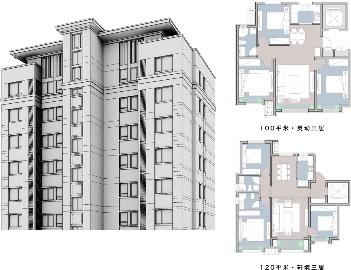 建筑设计风格在新东方基础上局部加入了装饰艺术元素,并满足当地对于建筑立面的三段式要求。