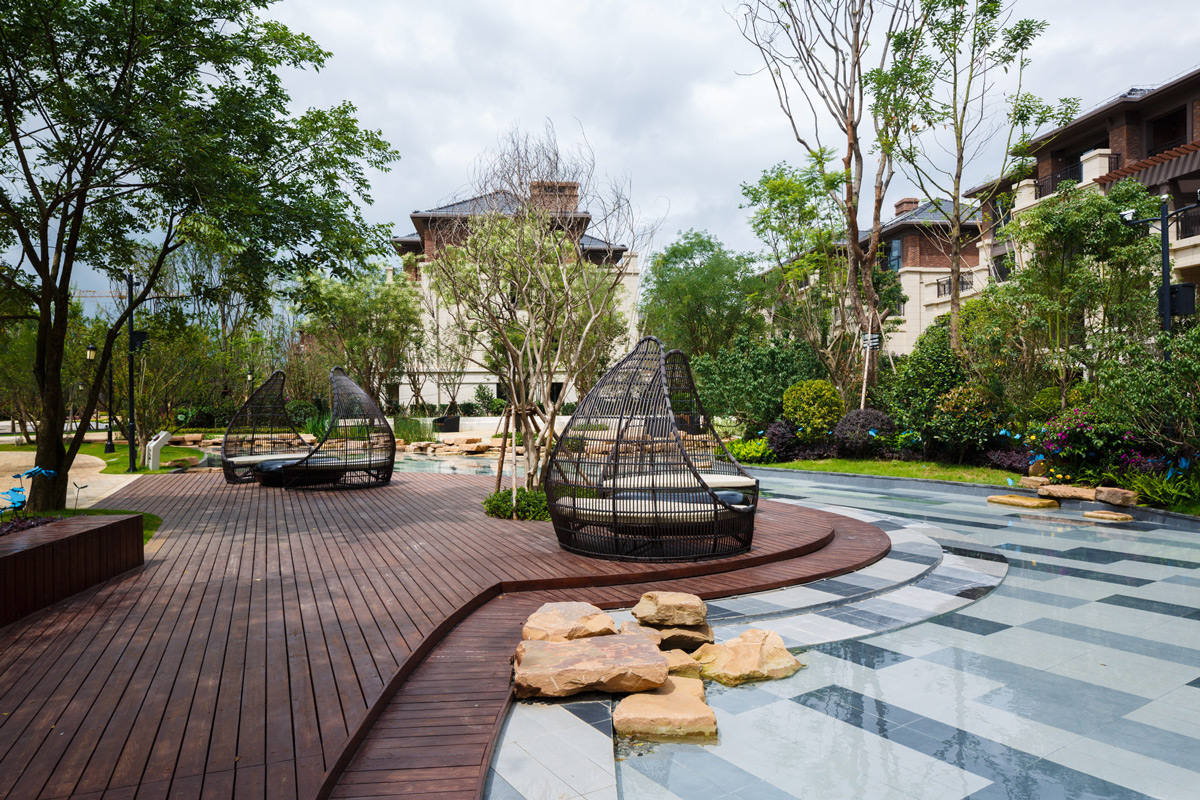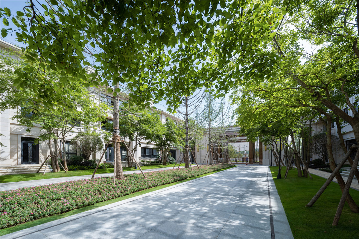 用原生态的景观创意和手法,打造都市“慢”生活滨水景观,以水的灵动,融入生活记忆。在立面的构宅间用缤纷植物搭配突出的花园主题,楼间距形成安静优雅的巷道小径,通往每一户墅居。