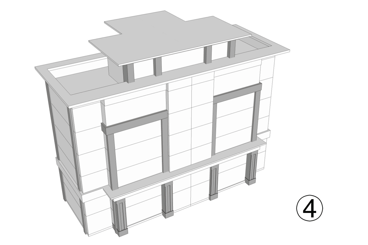 ① 根据初始平面关系生成体块,反推户型设计,保证房型尽可能方正;② 平面限制体块——造型服从功能,以平面为基础进一步优化设计造型;③ 塑造经典三段式形态