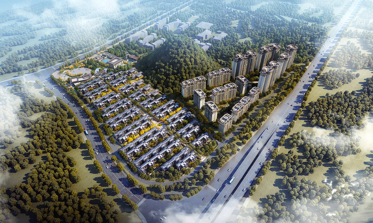 ▲ 在一期的规划设计中,围绕山体,借山为景,采用园囿式布局排列建筑。整体景观规划为“三轴、四园、六庭、九巷”的空间布局,将东方美学的基因表达到极致。