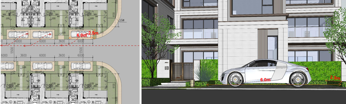▼ 归家逻辑的要点是流线设计。通过建筑、景观及地形设计相结合,人行流线从中央景观轴到每家的独院入户;车行流线从组团路到停车入户,都运用模型详细推导。