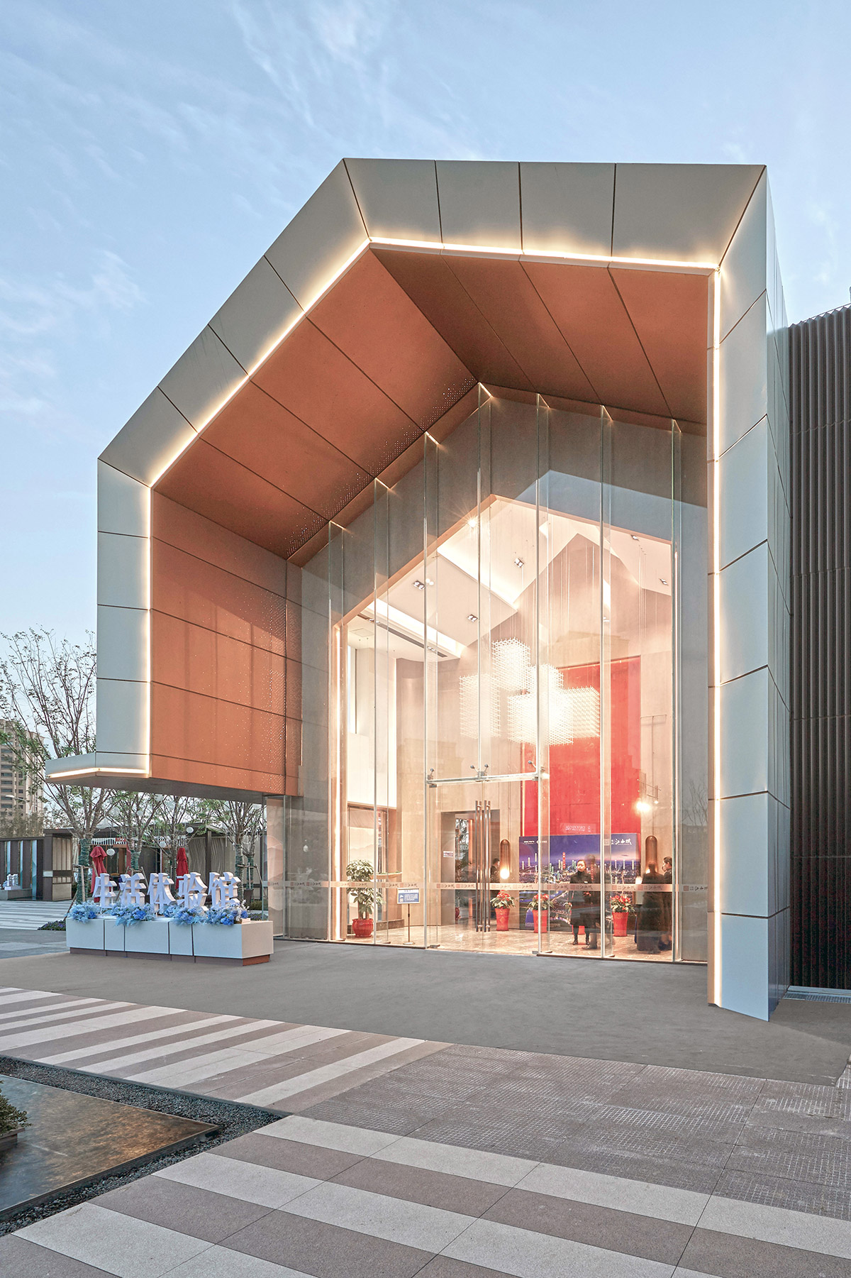 示范区从单纯商业使用功能演变成一个城市空间,以谦虚而积极的姿态迎接外面的世界。它以充满吸引力的城市雕塑形象,凝聚成一个与城市对话的场所。在这里,它不仅仅是一栋建筑,更是城市的“会客厅”。