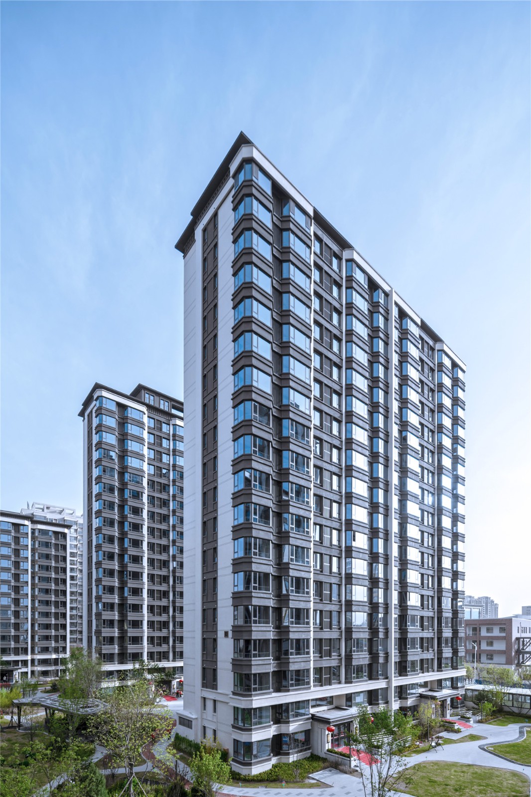 阳光城檀悦位于榆林开发区,由商业办公楼、中高层住宅,幼儿园三大部分构成,基地周边交通便利,资源丰富,医疗、生活设施完善。建筑是一种承载着厚重文化底蕴的图腾,榆林阳光城檀悦在传统文化的基础上演绎现代设计,在沿袭中国传统建筑的同时,更注重对现代生活价值的精雕细刻。设计以新中式为核心,结合水平、竖向、三段式经典美学比例,形成均衡的网络状结构及丰富的层次感,在设计的基础上追求经典传承的美学。